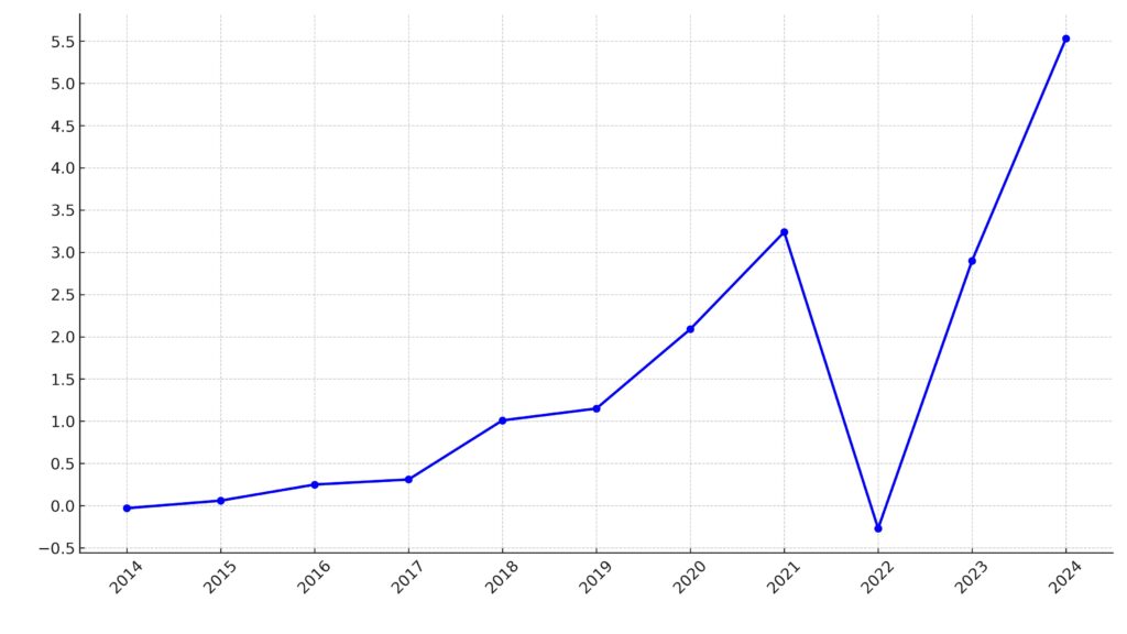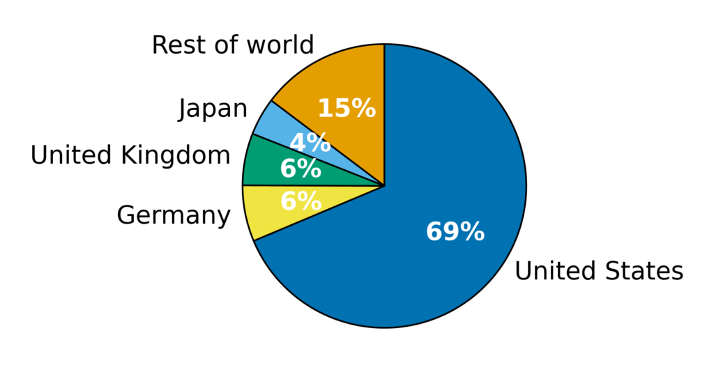 アマゾンは、クラウドサービスのAWS(Amazon Web Services)で世界トップシェアをもっています。AWSは企業がアプリやシステムを動かすための「ネット上のインフラ」を提供しており、幅広い企業が利用しています。AWSの利益率は、ネット通販よりもはるかに高い利益率を計上しており、AWSの利益はアマゾン全体を支えています。