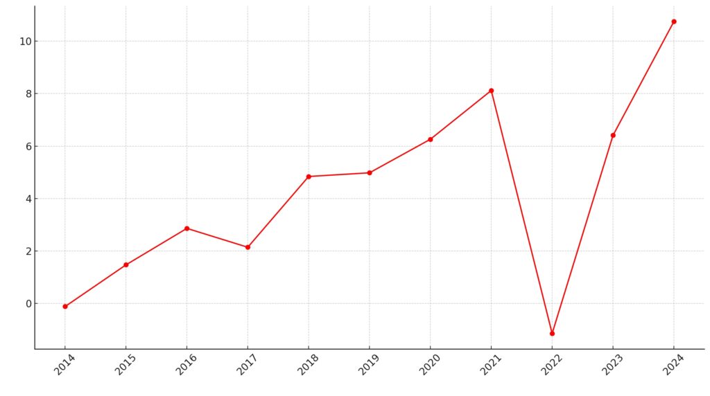 今回の決算では、AWSの高い成長率を維持しており、さらに全体の利益率も改善しています。売上高が+11%というのは、過去の売上高成長率と比べたら控えめ。企業として、成熟段階に入ってきました。
